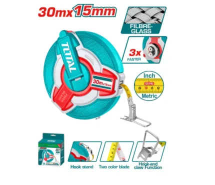 Mètre ruban en fibre Total Tools 30 m x 15 mm – Double face