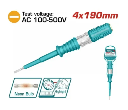 Tension d'essai : 100-500 V CA ; dimensions de l'encoche : 4 x 190 mm ; emballage : support en plastique